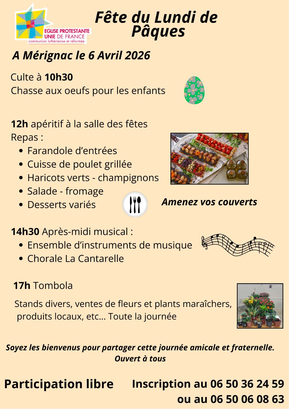 Soyez les bienvenus pour partager cette journée amicale et fraternelle.
